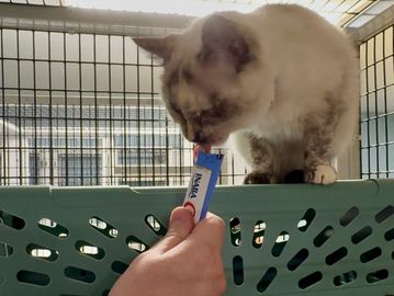 - Includes giving medications/supplements at meal times (placed in their food or in a pill treat).